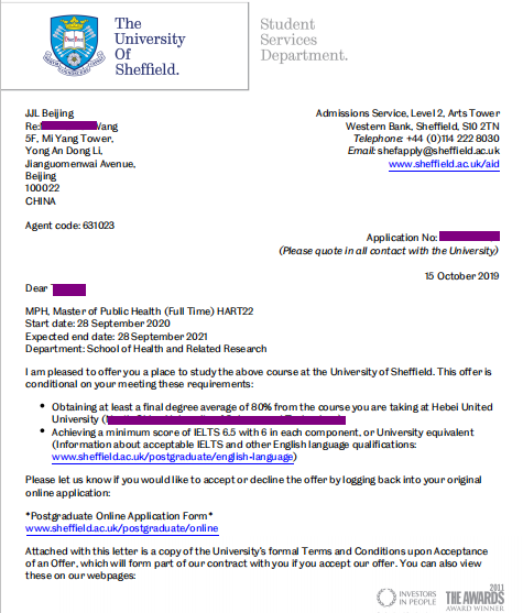 今天给大家分享一个世界百强名校谢菲尔德大学的硕士录取。正在考虑英国留学的同学们可以围观下噢!