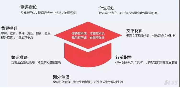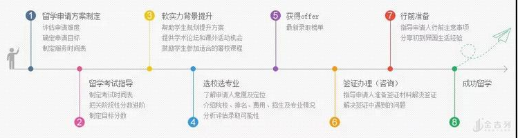在学生确定offer后,金吉列后期签证老师和外联老师会给学生和家长提供详尽的留学后期事项整理和指导,主要包括学生F1签证申请指导、父母B2十年签证指导、申请邮箱账号交接、校园邮箱注册、orientation信息、入学测试、选课信息、接机住宿、疫苗体检、学费保险信息、交通指南、温馨提示等方面。