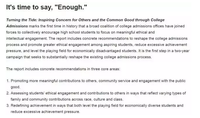 在申请顶级美国高校时,招生官除了会注重高中成绩GPA、SAT/ACT成绩以及语言能力成绩之外, 往往还会特别关注一些软实力——活动背景 。 学校可以通过所参加的课外活动来认识你,评价你,而这些是在GPA中体现不出来的。那么, 课外活动在美国大学本科申请中,扮演着什么角色呢? 在《Turing the Tie教育改革方向》中,各大名校招生官也明确表示了希望高中生把精力放在社会活动和自我价值上。