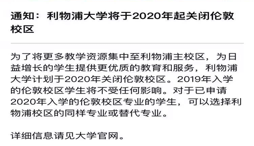 利物浦伦敦校区关闭学生该如何应对