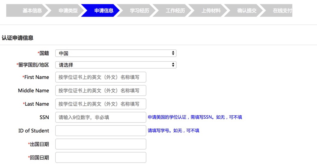 第三步我们就进行到了申请信息啦,即关于你学历的一些基本情况。