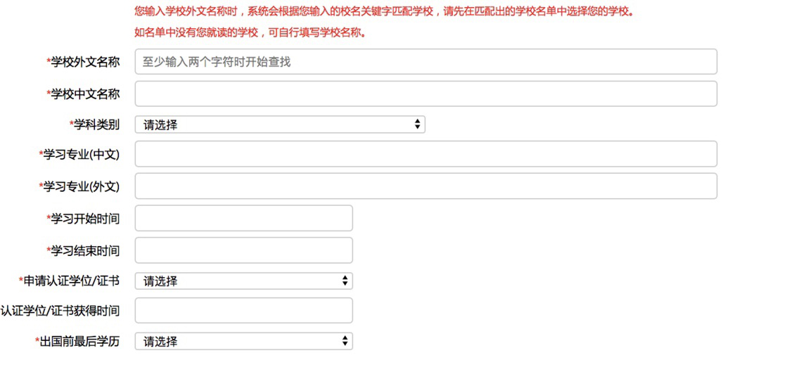 第四步是学习经历,通常补上一个高中的学历就可以到下一步了。