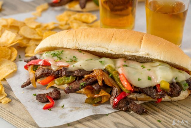 当然还有一些物美价廉的。像是起司牛肉堡(Philly Cheese Steak),不少餐厅和小吃店都有,样子像是长形的意大利面包中间夹着翻炒过的洋葱和肋眼牛肉。费城的南街(South Street)与四街交叉口有家Jim's是费城最著名卖起司牛肉堡的餐厅,在餐厅外往往是排队的人潮,而餐厅的墙上还挂有名人的照片与签名。