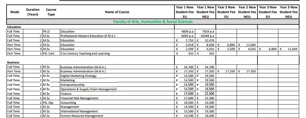 相对于同等学制,动辄 20-30万元人民币 的英国大学学费,爱尔兰这所知名学府的学费可以说极具性价比。