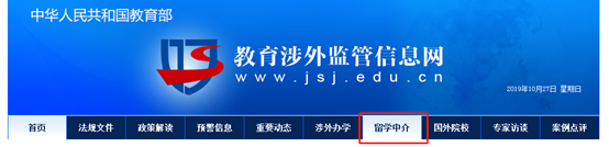 一个 “ 靠谱 ” 的留学中介机构,应该是得到中国教育部承认的,也就是市面上所有的留学中介机构都是需要做“自费出国留学中介服务机构资格认定”的。 大家在选定机构之前,可以通过中国教育部涉外监管信息网**查询相应机构的信息。 具体步骤: