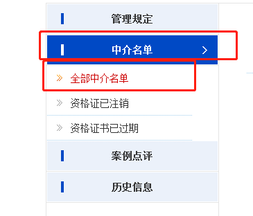 - 点击“中介名单” —“ 全部中介名单 ”