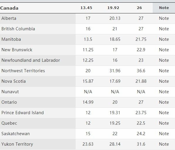 加拿大境内平均工资:$19.92/h