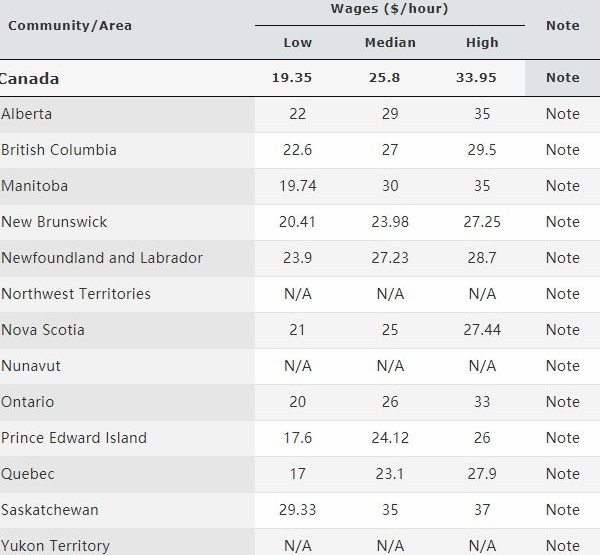 加拿大境内平均工资:$25.80/h