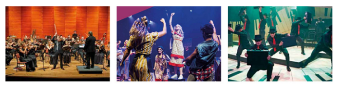 7种类型的公开表演剧场,包括剧院,室内/露天圆型剧场,音乐厅,编舞室,爵士乐工作室等