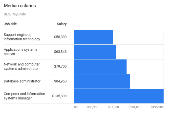 不仅如此,对于学生来说,IT行业的发展前景也令人鼓舞。BLS统计,IT职位的平均年薪在82,860美元,是美国所有职业中平均年薪的两倍以上。在高端市场中,一位信息技术总监的年薪可能接近12万美元(约85万RMB)。但专业人士给出建议,“大数据”增长及信息技术普及的优势只建立在硕士及以上水平。