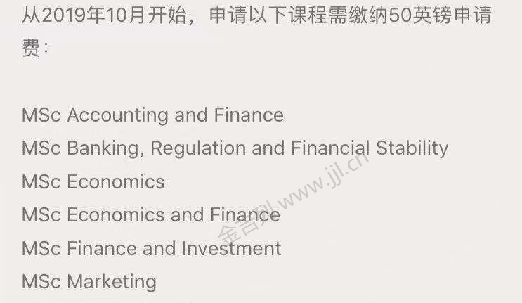 从2019年10月开始,申请以下课程需要缴纳50英镑申请费,更多详情请戳图: