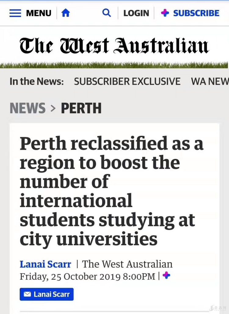 今年6月就有消息称,西澳州州长麦高文写信给联邦政府,要求将珀斯重新规划为偏远地区,以便有资格提供新的偏远地区激励措施。其实,政府出台的信号就是:可以增加移民机会就可以刺激国际留学生的人数。这个已经是公开的秘密了。终于,我们等来了珀斯回归偏远地区的“官宣”!!!