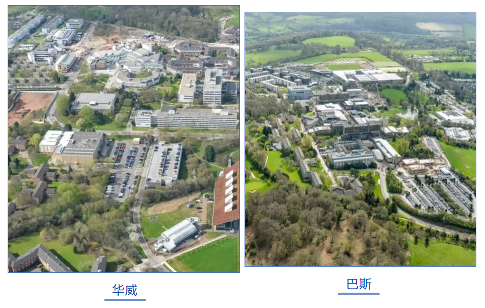 作为两所平板玻璃大学,巴斯大学和华威大学的校园都非常现代。 华威大学QS世界排名62,巴斯大学世界排名172,由于没有医学院这类“论文生产大户”,巴斯大学的世界排名一直偏低。