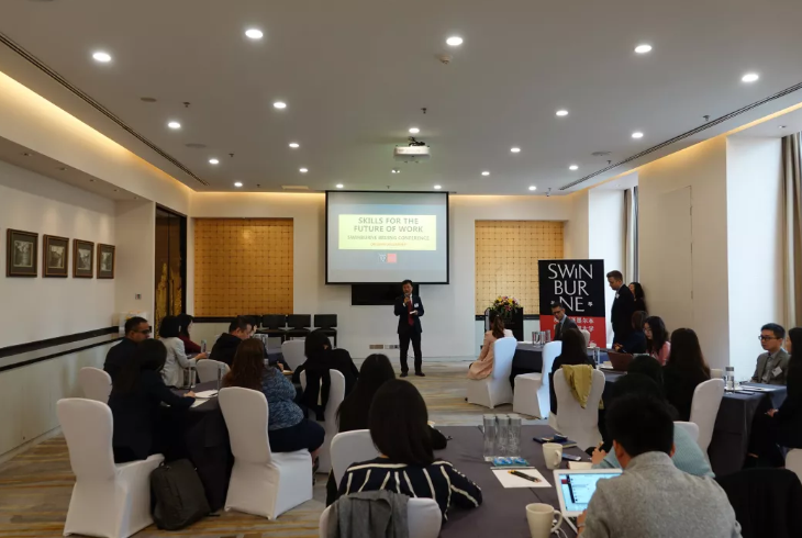 10月23日,斯威本科技大学未来生产力研讨会暨全国VIP代理峰会在北京费尔蒙特酒店拉开序幕,我们很高兴能与中国国际教育交流协会、中国教育媒体、留学代理机构、澳贸委、斯威本未来生产力中心主任Sean Gallagher、国际招生负责人Jogvan Klein、中国和北亚区招生负责人Michelle Liu、中国招生经理Joanna Qiao以及中国数字营销经理Jasmine Yang欢聚一堂,共同围绕“未来生产力的趋势和需求,以及我们应该如何做好充分准备”的主题展开意义深远的探讨与交流。