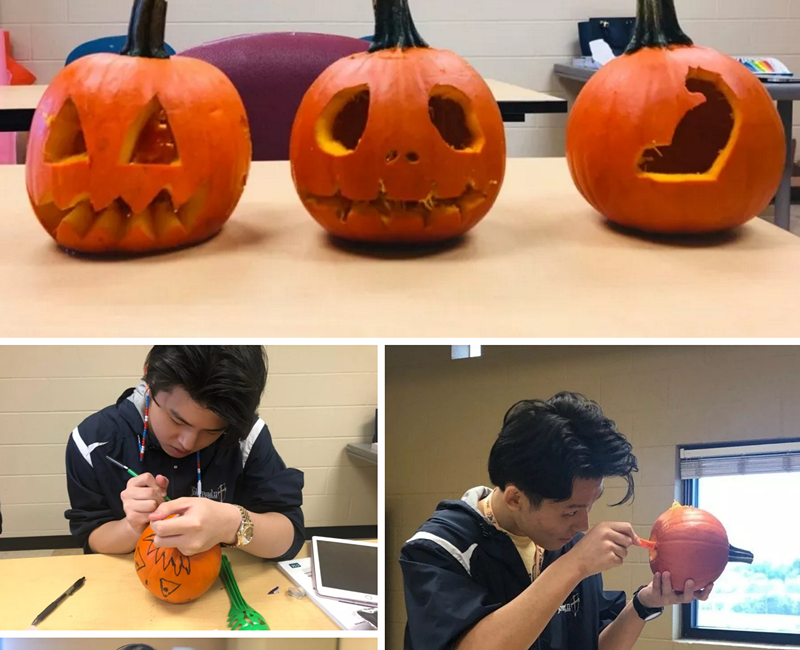 来自位于田纳西州的Pope John Paul II High School(约翰保罗二世主教高中)的三位同学在剑桥学生发展经理(SDM)的带领下完成了他们人生中的第一只 雕南瓜
