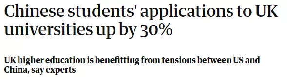 倒是乐坏了其他竞争国家。UCAS 公布的 2019年英国大学申请数据,过去一年中,申请英国留学的中国学生增长30%,甚至超过了英国本土的北爱尔兰!同样,加拿大多伦多大学国际学生申请书增加了20%;劳里埃大学的申请数增加了32%。