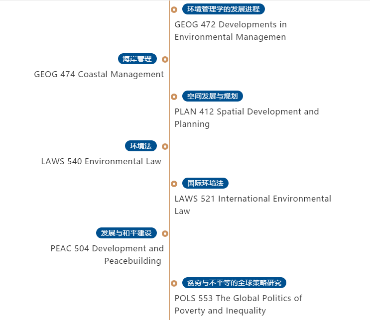 GEOG 401和PLAN 411为国际化发展和规划提供了理论基础。GEOG 402则教授学生思考如何在实践中实施规划和开发。在GEOG 590中,学生需要完成一篇2万字的研究型论文,这是计划申请博士学习的学生必备的升读条件之一。