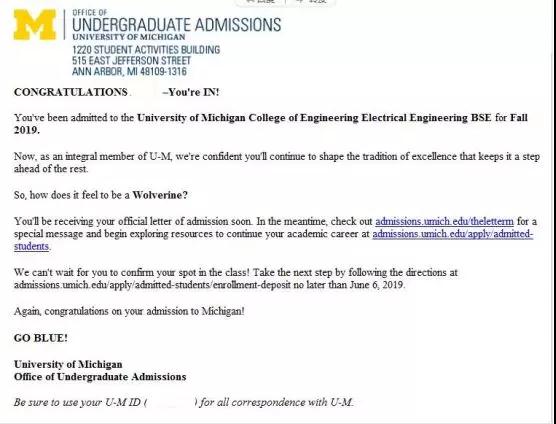 通过我们大家共同的努力和配合,最终 W同学收获了密歇根大学安娜堡分校的 offer,目前学生的签证也顺利过了,体检等后期事宜也都处理好了,就等着开心入学了。
