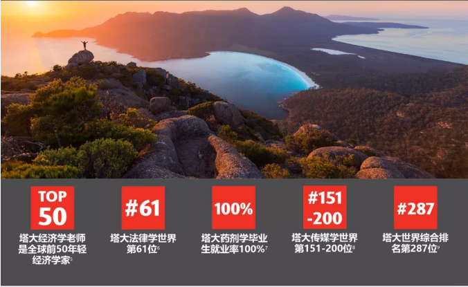 塔斯马尼亚大学的 QS 排名已经持续多年上升, 2017 比 2016 年上升 9 位, 2018 年比 2017 年上升 57 位。 2019 年比 2018 年上升 26 位,塔大跃升至全球前 300 名, 2020 年,塔大继续保持了前 300 强的佳绩。