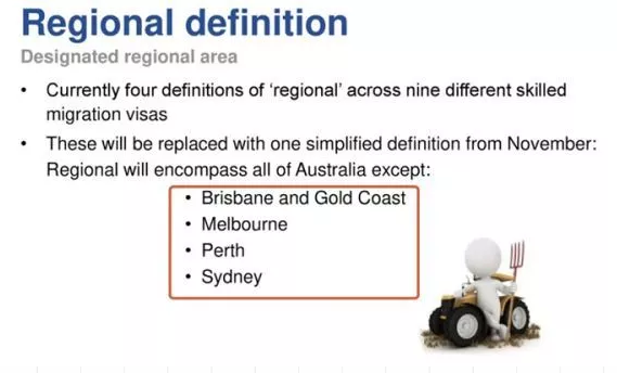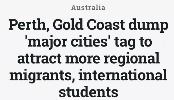 这意味着,新政策实行后, 除了悉尼、墨尔本、布里斯班3个城市之外,其他都是非大都会地区。珀斯和黄金海岸可以享受非大都会地区的福利,移民优惠政策也和非大都会地区一样。