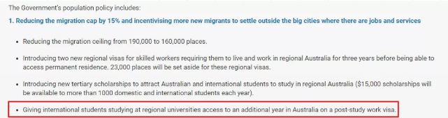 2)只要在偏远地区读书超过2年并完成学业的小伙伴(当然新政之前就在此读书的也算数),就可以多拿5分的移民加分,这5分可用于491、189以及190。