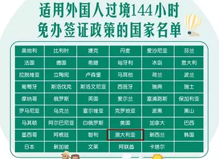 在最新发布的名单中,可以在中国申请过境免签的国家从51个增加到了53个。澳洲也赫然在列!