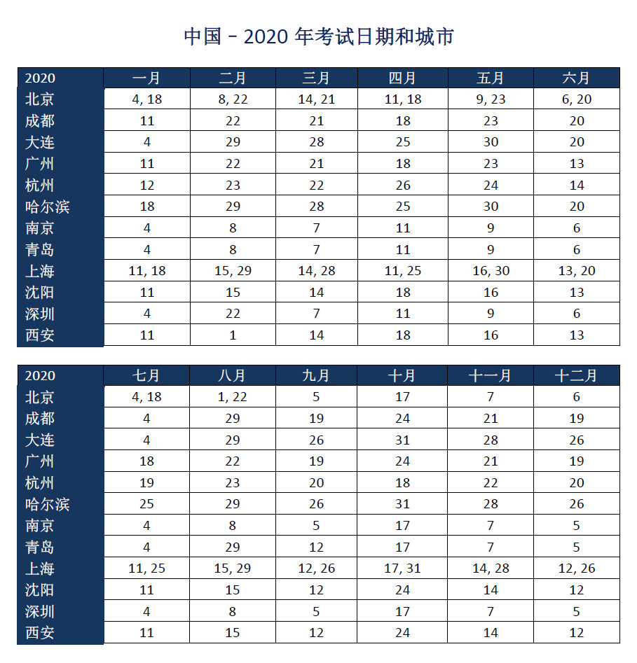 2020年AEAS考试现已开放报名,考生可参考以下日期进行注册。请注意,某些城市的考试日期可能会在未来出现调整,实际日期请按在线报名时 显示 的时间为准。