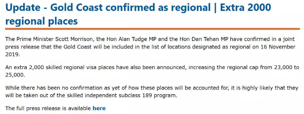 正当大家翘首企盼新政的时候,最近官宣了这一重大利好信息, Perth 和黄金海岸将被划作偏远地区!并把偏远地区的移民配额从 23 ,000 增加至25 ,000 !!!