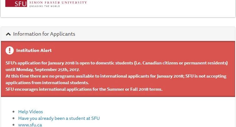 去年,西蒙菲莎大学(SFU)也因为收到了大量2017夏季和秋季的国际学生直录申请,学校达到了最大负荷。
