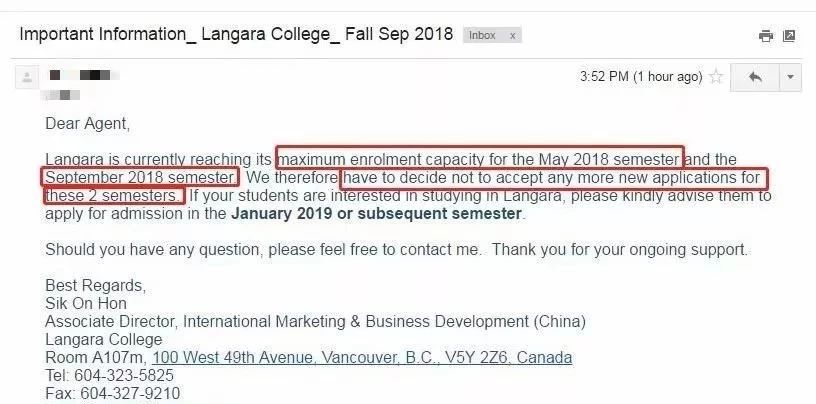 SFU刚宣布完,Langara College也跟着表示停止2018年夏季、秋季的国际学生招生。