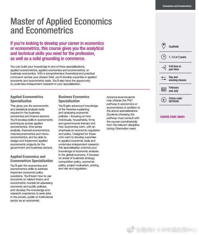 蒙纳士大学 应用经济与经济计量学硕士课程介绍: