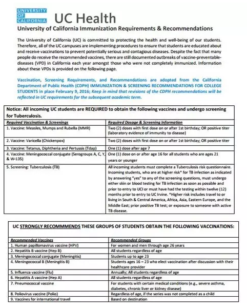 美国大学每个学校对国际生的体检要求都不相同,通常学校的体检要求会和I20等材料一起寄过来,也有的学校会要求学生自己去学校官网查看相关信息,一般这类的信息称为 Immunization Requirement ,而具体到疫苗注射记录,则称为 Vaccination Recor (即学生需要提供的疫苗注射记录格式)。