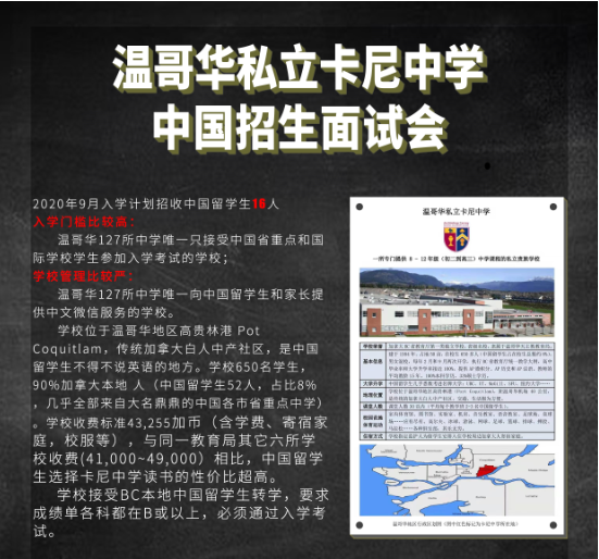 入学门槛比较高:温哥华127所中学唯一只接受中国省重点和国际学校学生参加入学考试的学校;学校管理比较严:温哥华127所中学唯一向中国留学生和家长提供中文微信服务的学校。