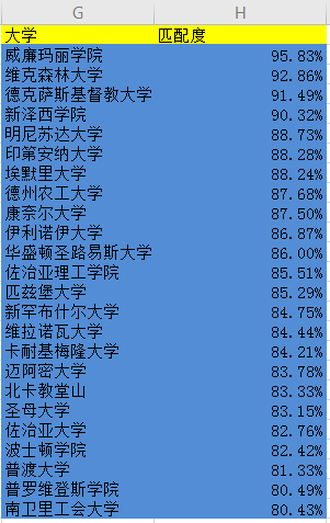 通过排名看到,其实商科项目就业前景比我们想象的好一点,有21所学校就业率超过90%,32所超过85%(去年超过90%的有27所,超过85%的有29所),其中康奈尔和北卡教堂山就业率达到100%。另外,威廉&玛丽学院、维克森林大学、德克萨斯基督教大学、新泽西学院的毕业生职业匹配度都超过90%。