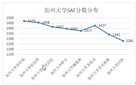正常情况下随着高校排名的延展,录取分数应逐渐降低,而对应的录取率应逐渐变高。而加州大学的整体录取结果显示有两所学校即加州大学戴维斯分校( UCD )和加州大学圣迭戈分校( UCSD )的数据在同级别学校中较为异常,其中 UCD 的录取率甚至低于加州大学圣芭芭拉分校,仅有 27% ;而 UCSD 则是 SAT 达到 1427 的同时,录取率仅为 30% ,其录取难度在同排名阶段的学校中较高。