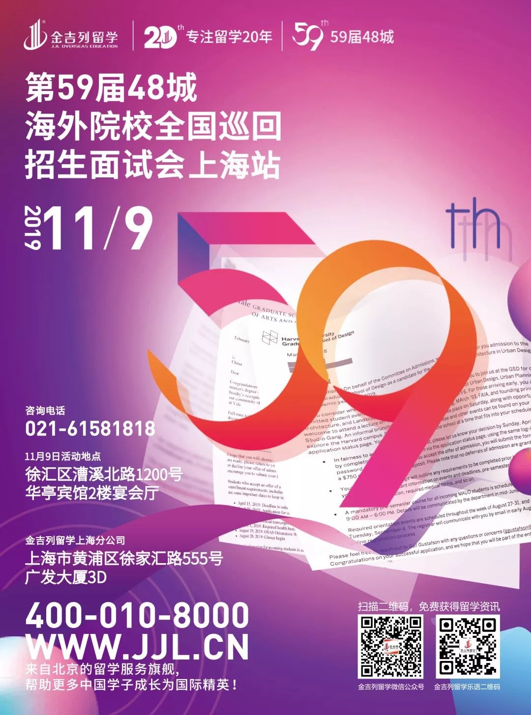 每一年都有人前赴后继去往异国,开启自己的“常青藤之旅”。但当你真正脚踩在异国的土地上,才会发现彼时简单脱口而出的 “我想出国留学”,有多么烫口与无奈。语言、成绩、面试、签证、就业,就像是5座大山,压在你的心头。你经历过和父母一天跑十场咨询会,也经历过一天拨打无数个国际招生热线。但即使这样,你也无法从“小白”晋升为“留学百事通”,随着时间推进,政策的变化无端,你坐如针毡,无法做到“胸有成竹”,只能一遍遍的重复。有人说“人的这一生就像是赛车,比的不是直行道上的速度,而是过弯道时的技术和经验;谁能快过一分半秒,就会成为最后的赢家。”有什么方法能够降低孩子和家长的时间成本,提高择校的效率和质量呢?来金吉列第59届48城海外院校全国巡回招生面试会上海站,你就能找到心中的答案。