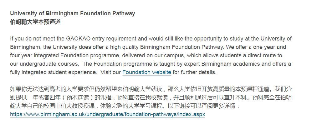 另外, 如果学生没有参加国内的高考,但是有获得高中毕业证的话,伯明翰也是接受学生直接申请他们家