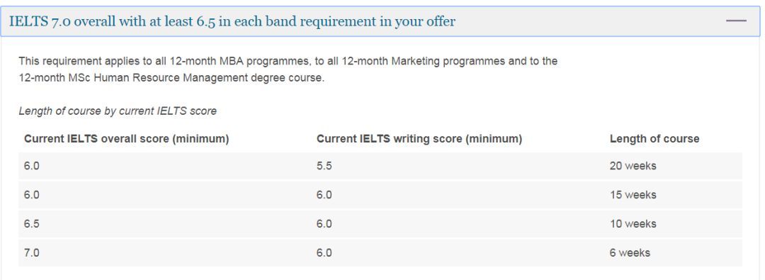 对商学院正课要求总分6.5小分6.0的课程(会计金融专业就是这个要求哦),语言班要求看起来就比较合