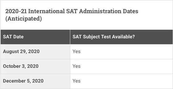 2020 SAT考试时间