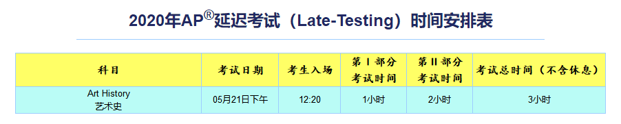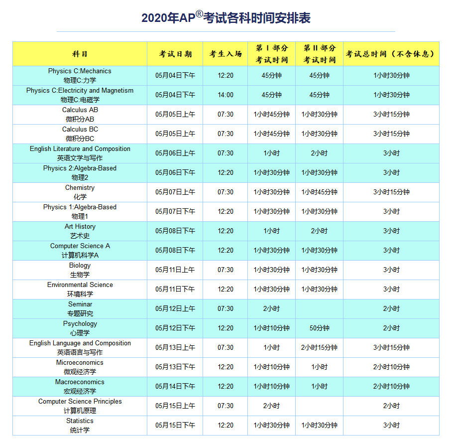 2020 AP考试时间