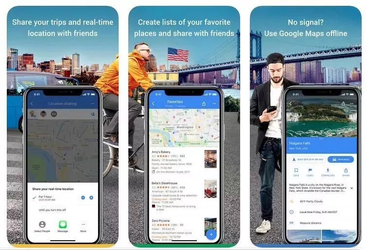 出门必备 Google Maps: 等于中国的百度地图,必备导航,特别准,很好用,还会告诉你公交和线路。