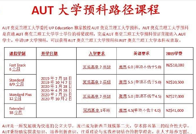 AUT大学本科申请有两种途径:一是通过国内高考成绩,高考成绩达到一本线,雅思6分可以直入本科;二是高中在读生可通过预科的形式进入本科,请看下列表格。