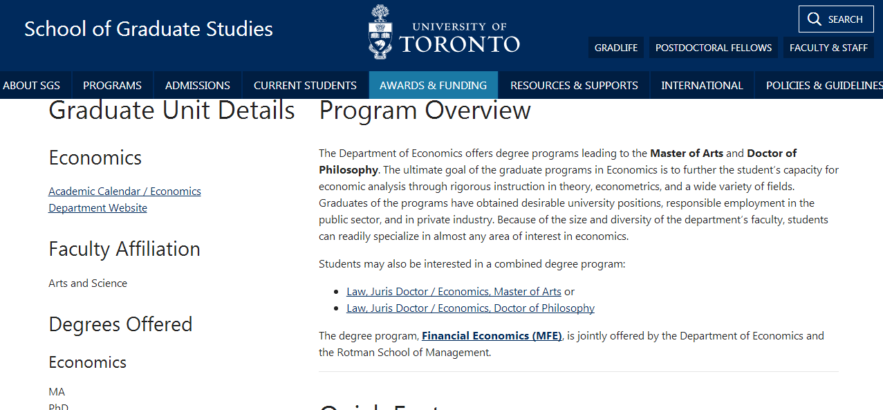 文学硕士学位是一门只能通过课程学习的课程(没有学位论文要求),可以是全日制或兼读制。它是为那些希望在公共、私人和非盈利部门工作的个人设计的,也为那些打算攻读经济学博士学位的学生设计的。申请攻读博士学位的学生必须具有硕士学位;拥有学士学位是不可能直接进入的。