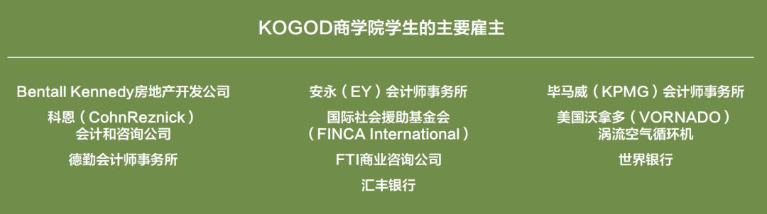 无论你希望就职于国企还是私企、跨国公司还是极具潜力的初创企业,Kogo都将赋予你追求梦想的能力。我们的 毕业生在商界开拓新的领导途径、推动潮流,走在变革的最前沿。