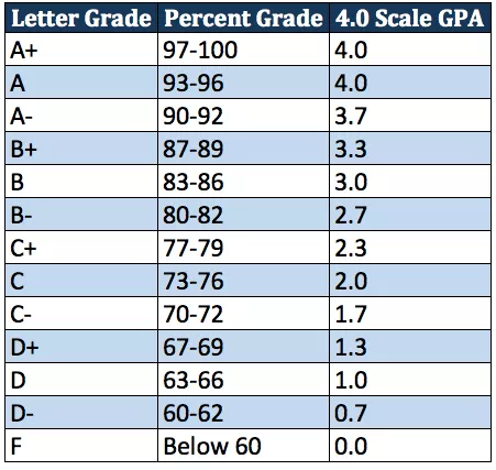 与国内百分制的成绩评估标准不同,美国的课程老师通常用字母,例如A、 A-、B等来表示学生的课程成绩,学校再把字母转换为相应的数字。