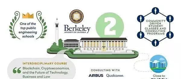 也许最重要的是,加州大学伯克利分校得益于美国最活跃的校园社区之一。学生组织Blockchain at Berkeley不仅提供相关教育,而且还创建区块链相关的产品,为空客(Airbus)和高通(Qualcomm)等大公司提供有偿咨询服务。伯克利的法学院和商学院也有自己的区块链相关社团。