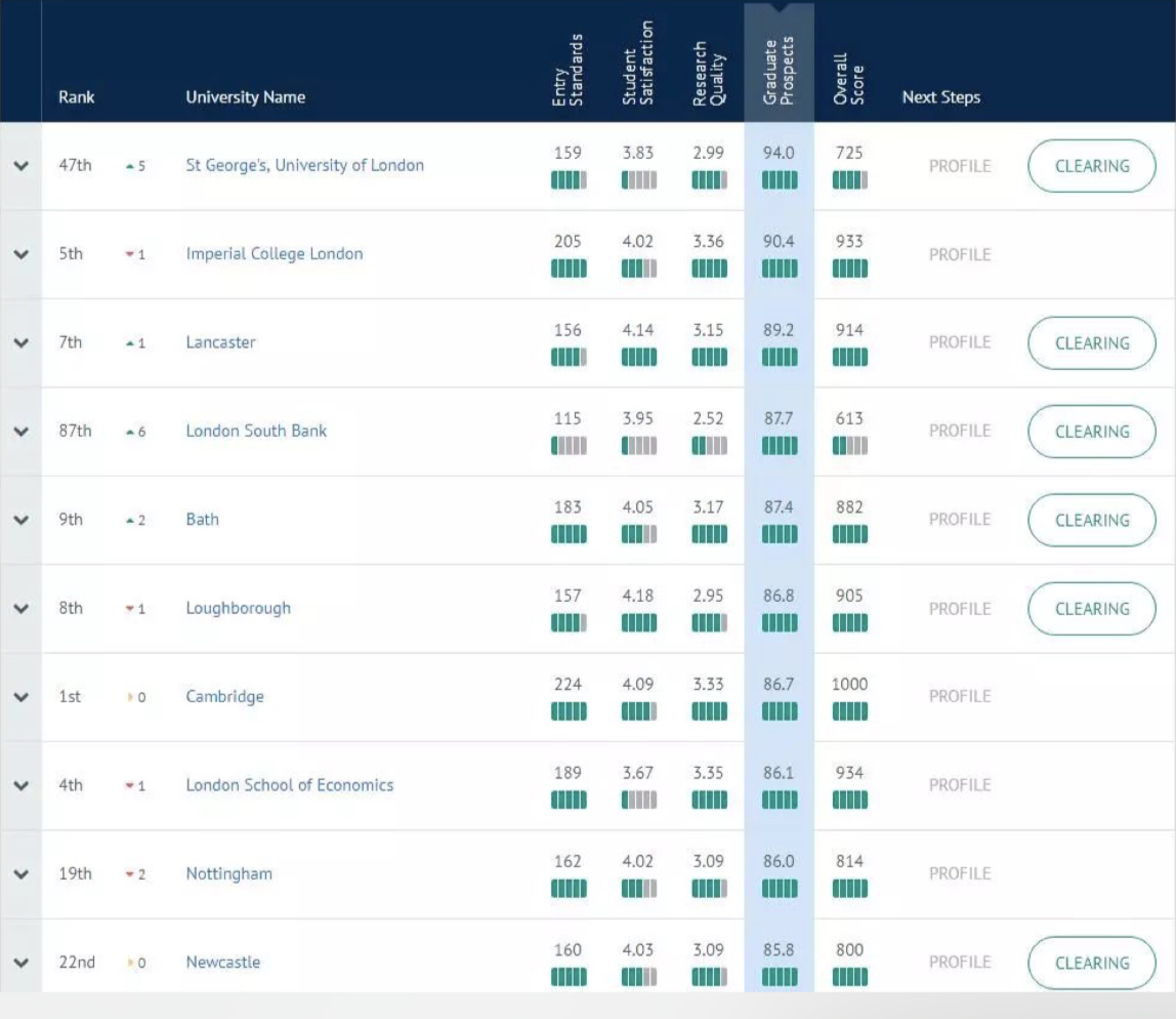 然鹅,如果仅基于就业情况这一维度考虑,到底英国哪所院校的毕业生就业前景最好?来看看卫报给出的答案。
