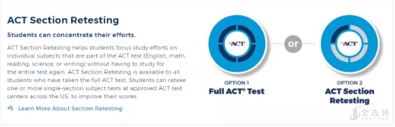 注:现只有在美国,美国领土和波多黎各的ACT全国考试日中可以参加单科重考。