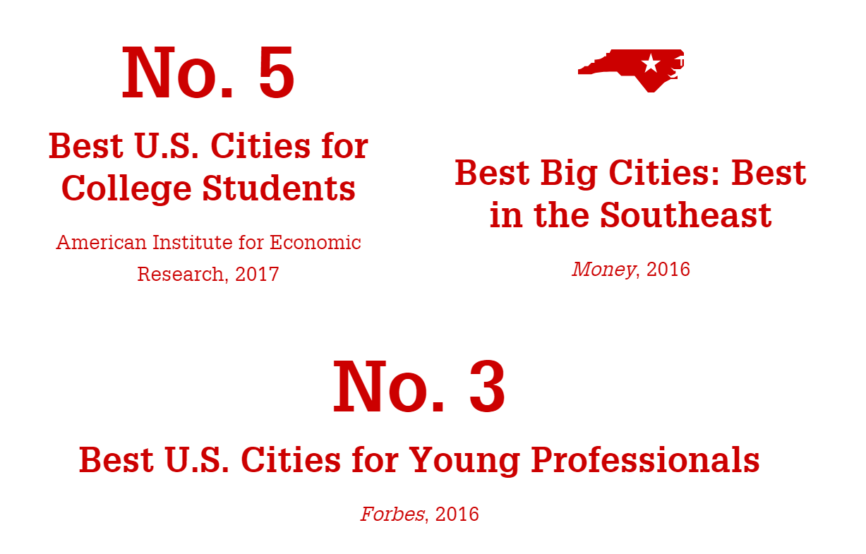 世界闻名的科技三角研究园区在北卡州立大学与北卡罗莱纳大学教堂山分校以及杜克大学之间,区内有生物技术中心、育成中心、研发中心及服务中心。不仅吸引了大型企业来此设立研发单位,在附近设厂生产,同时也吸引了大量高科技人才到园区及大学服务,成为全美博士人口密度最高的地区。