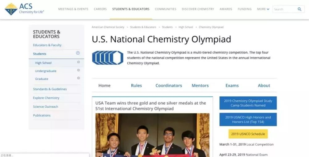 美国奥林匹克化学竞赛 USNCO是由American Chemical Society (ACS) 美国化学学会举办,是美国极具影响力的高中化学竞赛 ,旨在通过该竞赛激发培养年轻人对学习研究化学的兴趣和潜能。 作为美国顶尖赛事之一 ,每年有近16000名美国学生参赛。